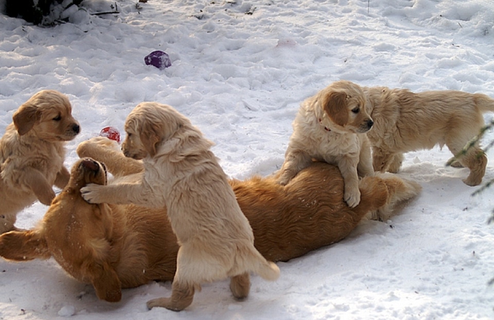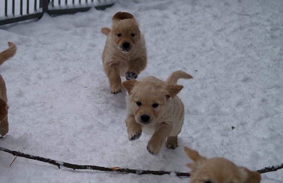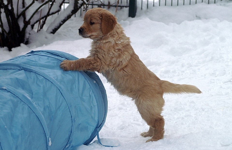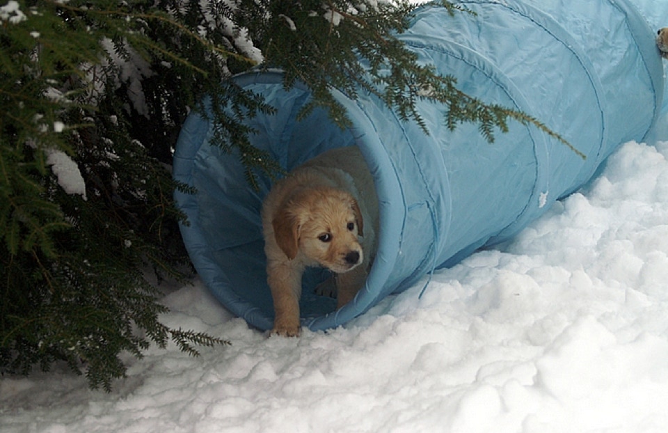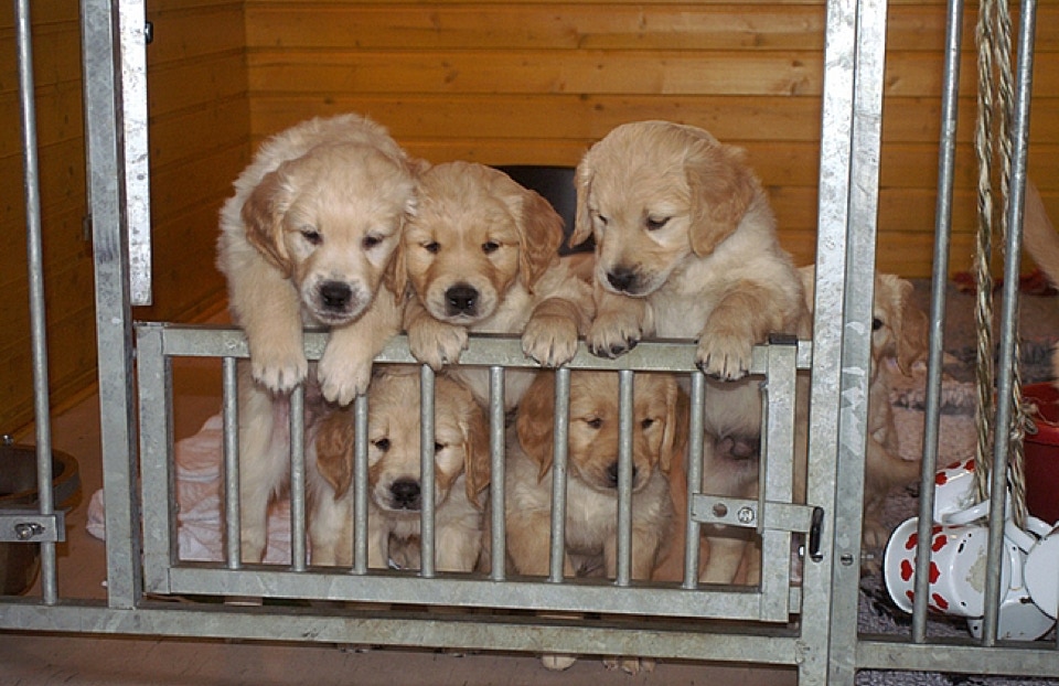 Bei der Aufzucht der Welpen ist mir die Prägung der Welpen ein besonders Anliegen. Die Wurfkiste steht in unserem Wohnzimmer, so dass die Hunde immer dabei sind. Außerdem steht ihnen ein großer Außenauslauf mit einem Welpenhaus zur Verfügung.