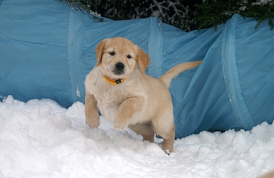 Bei der Aufzucht der Welpen ist mir die Prägung der Welpen ein besonders Anliegen. Die Wurfkiste steht in unserem Wohnzimmer, so dass die Hunde immer dabei sind. Außerdem steht ihnen ein großer Außenauslauf mit einem Welpenhaus zur Verfügung.